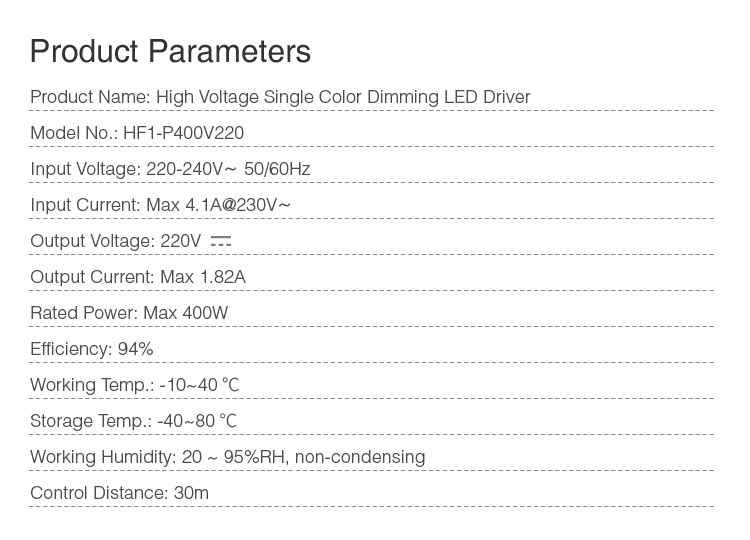 F1-P400V220 High Voltage Single Color Dimming LED Driver Price:¥